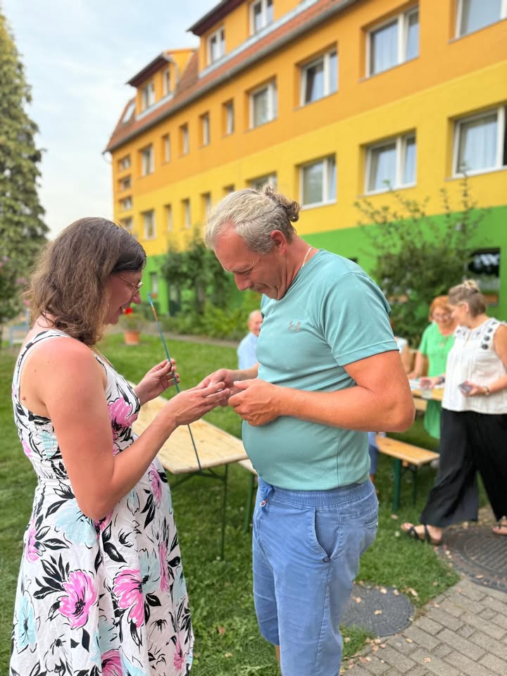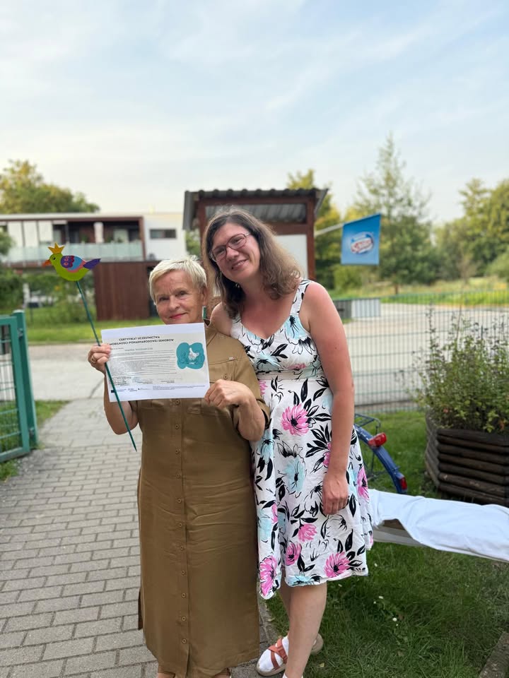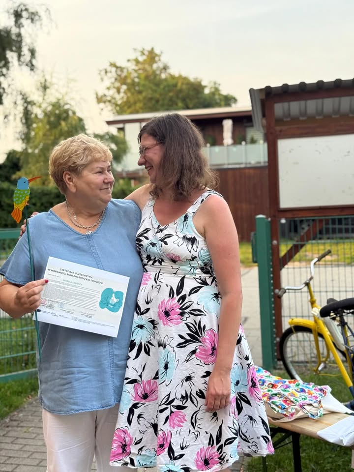 Dziś dobiegła końca nasza dziesięciodniowa mobilność edukacyjna w ramach projektu „Odzyskiwanie wspomnień – międzynarodowa mobilność seniorów śladami pamięci” w programie Erasmus+. W terminie 01.08.2025 – 10.08.2025 24 uczestników w wieku senioralnym aktywnie rozwijało swoje umiejętności, poszerzało wiedzę i dzieliło się historiami, które warto zachować dla przyszłych pokoleń. Działania prowadziło stowarzyszenie VFBQ Bad Freienwalde e.V. – dziękujemy. Ostatni dzień rozpoczęliśmy wykładem „ – historia, dziś i jutro kampanii pamięci”, podczas którego podsumowaliśmy dotychczasowe działania i spojrzeliśmy w przyszłość projektu. Następnie, w trakcie warsztatów „Co dalej? Jak działać lokalnie”, uczestnicy opracowywali pomysły na mikroakcje i inicjatywy, które będą mogli realizować po powrocie do swoich społeczności. Po przerwie lunchowej odbyła się w sesja „Żywa biblioteka pamięci” – seniorzy dzielili się swoimi wspomnieniami, emocjami i doświadczeniami, występując przed kamerą lub w rozmowach z zaproszonymi gośćmi. Był to moment pełen autentyczności, wzruszeń i poczucia wspólnoty. Zwieńczeniem mobilności była ewaluacja końcowa w formie kręgu refleksji, wypełnienia ankiet oraz pracy z kartą „Moja ścieżka kompetencji”. Symboliczne podsumowanie pokazało, jak wiele każdy z uczestników wyniósł z tych intensywnych dni – zarówno w obszarze wiedzy, jak i osobistych przeżyć.